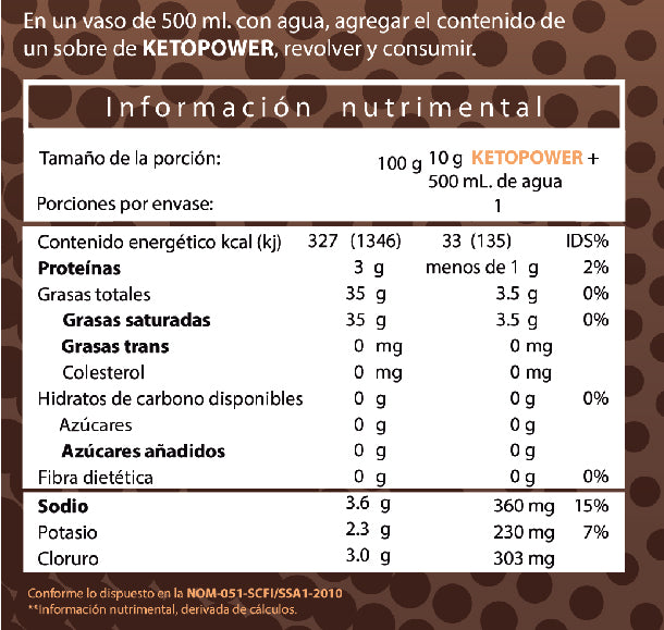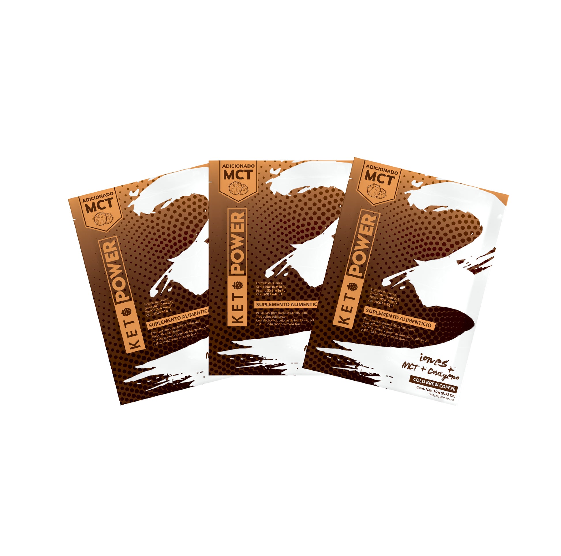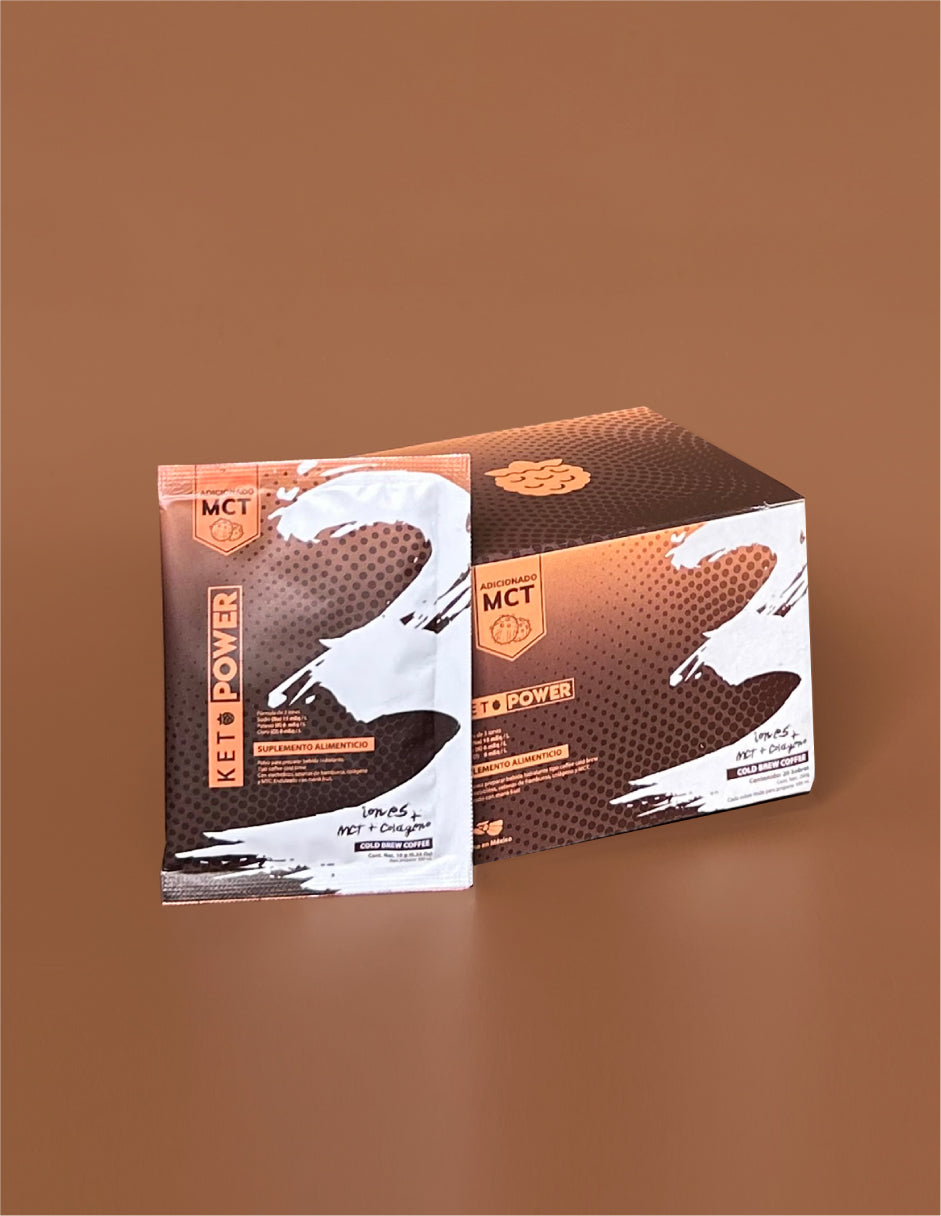 Cold Brew Coffee: contiene cetonas exógenas, fórmula de 3 Iones (Na-K-Cl), Triglicéridos de Cadena Media (MCT) de aceite de coco, colágeno y está endulzado con Monk Fruit y Stevia